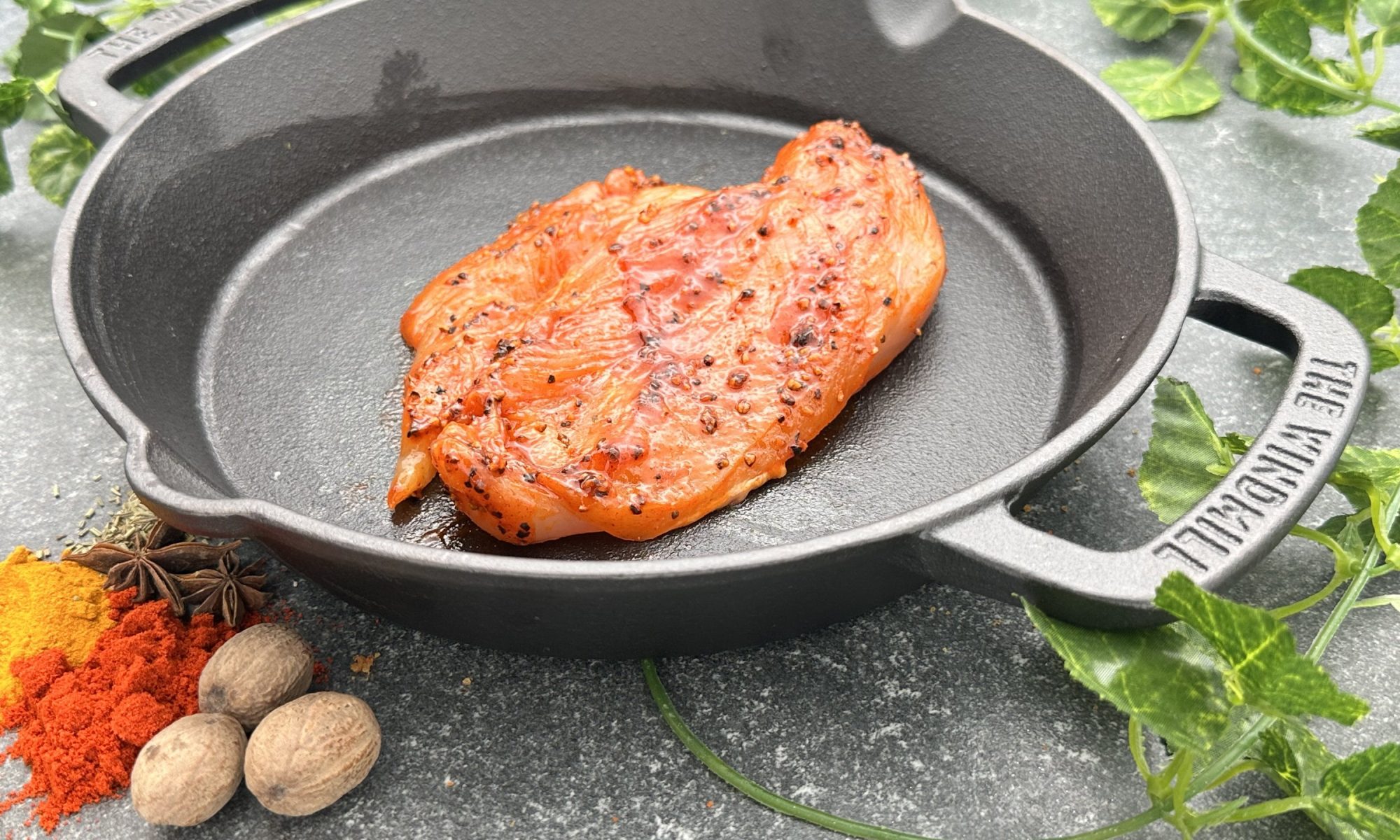 Kipfilet met virginia marinade.. Een iets pittige marinade op olie basis, dus zo te gebruiken in de pan!