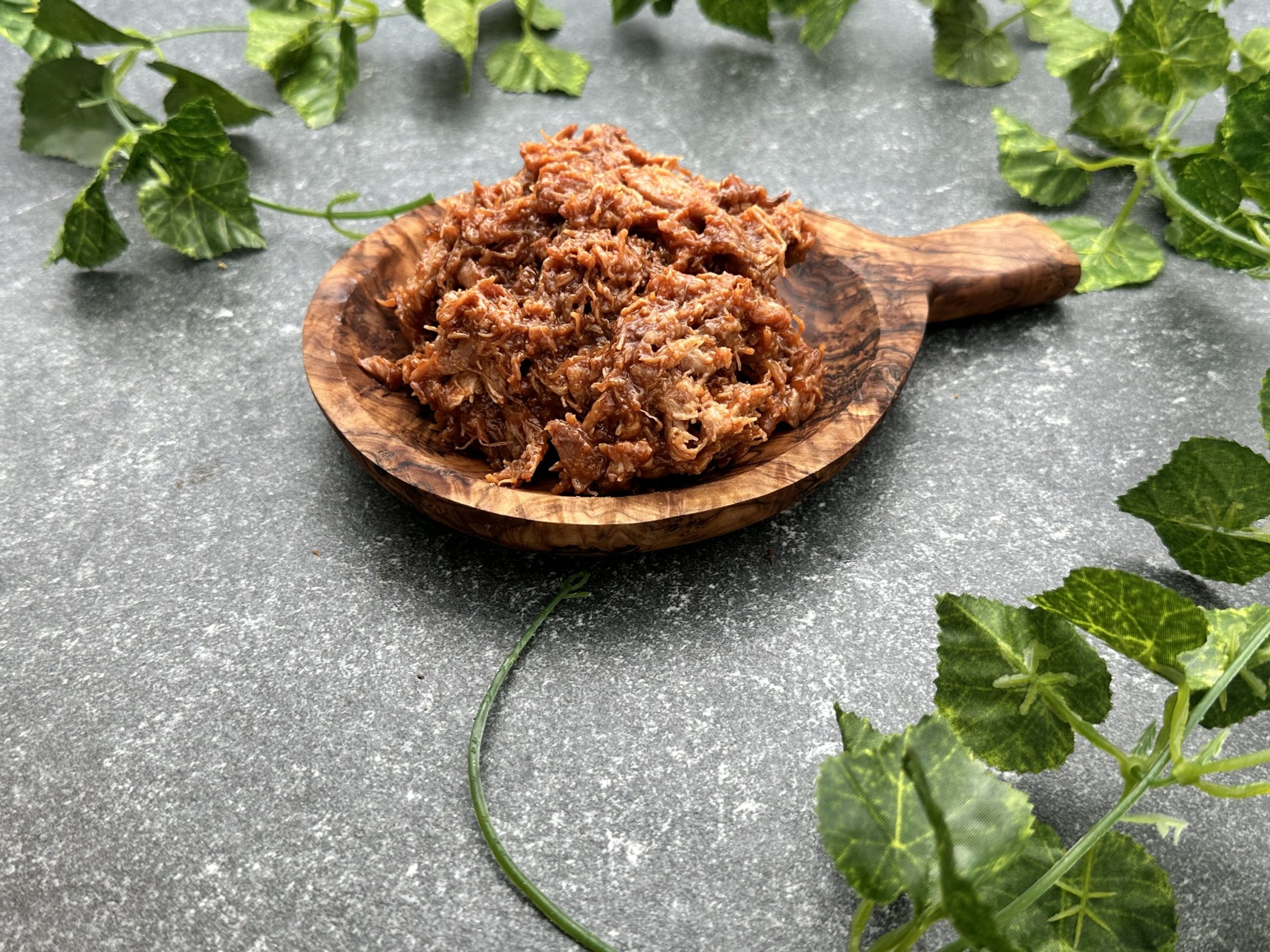 Malse, dunne sliertjes kipdijenvlees, heerlijk gemarineerd en daarna in een unieke pulled bbq-saus
