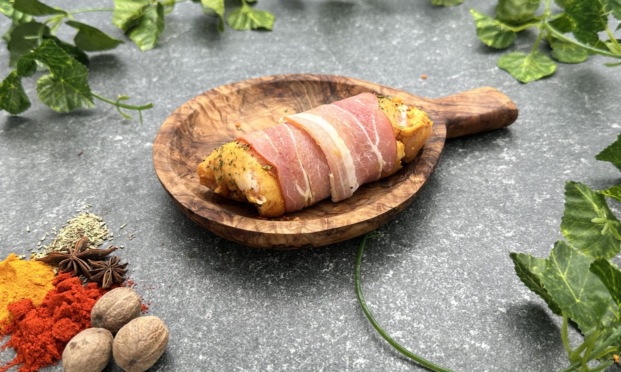Sallandse heuvelrugjes, een heerlijk gekruid kipdijtje, ingerold in spek