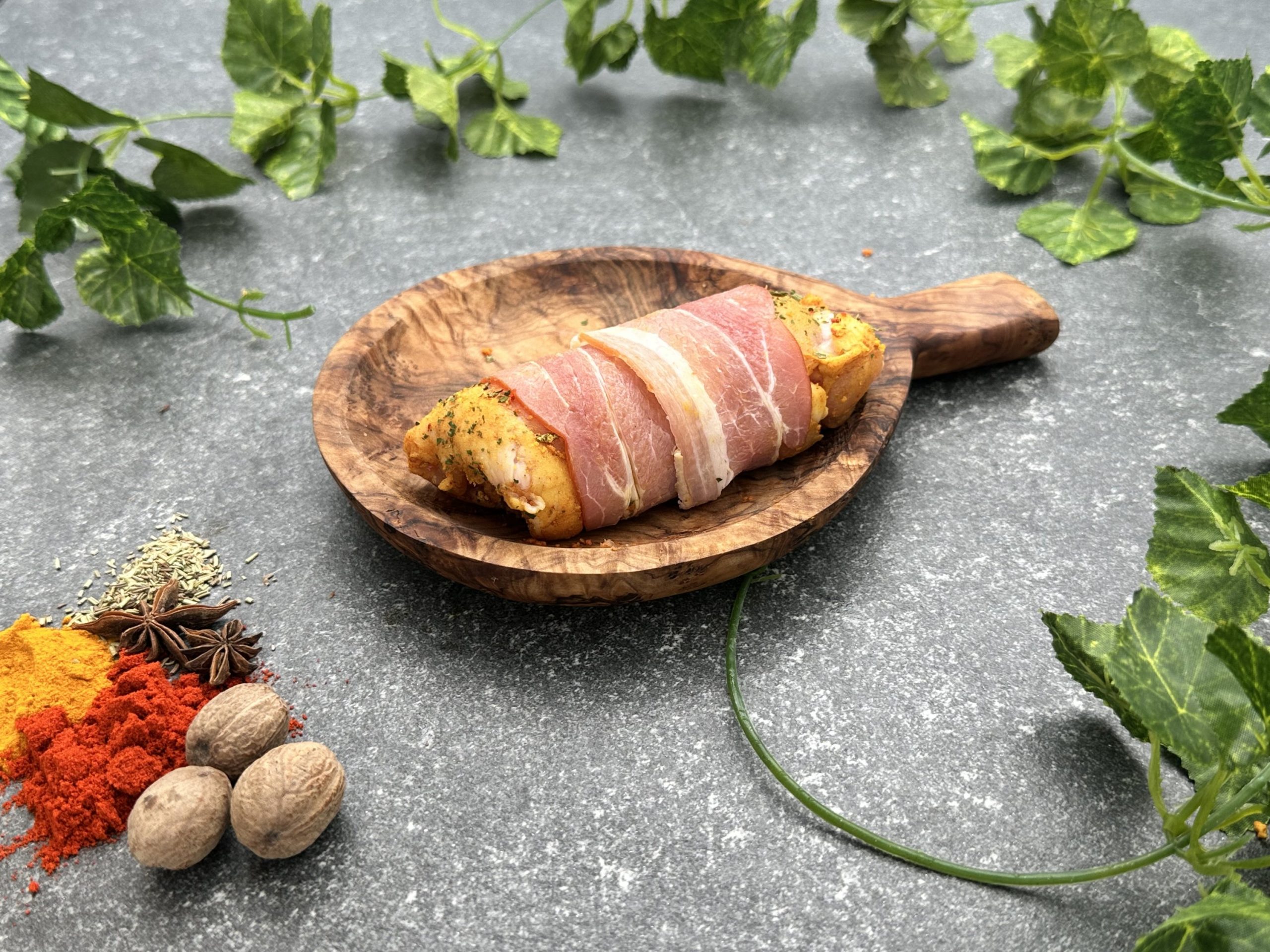 Sallandse heuvelrugjes, een heerlijk gekruid kipdijtje, ingerold in spek